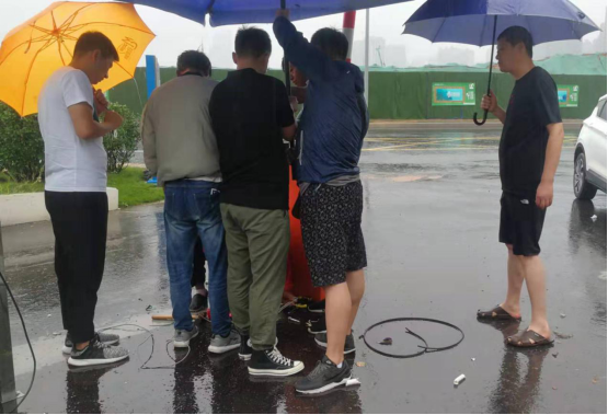 ? ? ? ? 此時(shí)“利奇馬”臺(tái)風(fēng)已經(jīng)開(kāi)始影響濟(jì)南,而停車場(chǎng)的信息化工程,需要強(qiáng)電、弱電、手機(jī)信號(hào)優(yōu)化等一系列施工改造,以及視頻設(shè)備安裝為了確保出入口附近地面溝槽的安全,工作人員專門(mén)找來(lái)5把太陽(yáng)傘遮擋雨水。然而大風(fēng)襲來(lái),太陽(yáng)傘瞬間被撕裂……